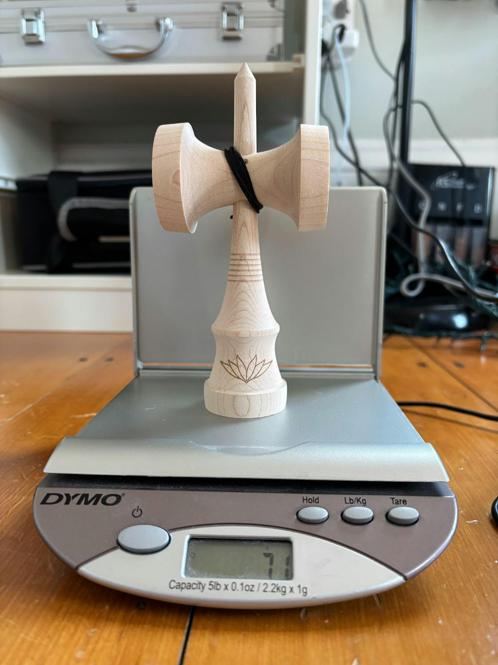 The first priority when curating this shape was balance. We wanted a perfectly balanced Ken that offers the player the ability to rapidly switch between different styles of Kendama play. We found the ideal size fraction between length, width, and height. The Ken flips on a perfect axis, making all flipping tricks feel natural and organic. This shape is tuned in to everything - flow, flips, stalls, balance, lunars, and slingers. On average, the Element Sarado is heavier than the sword, which means every Kendama is desgined to be lunar honed.
